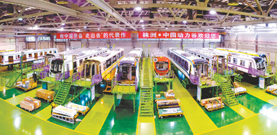 传统产业改造升级步伐加快。图为中国中车株洲电力机车有限公司组装车间。 |