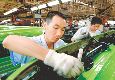 中国制造加速走向世界。图为陕西汽车控股集团有限公司工人在装配远销90多个国家和地区的重型卡车。 |