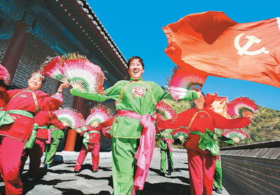 9月28日,北京市密云区古北口村组织文艺展演活动,表达百姓迎接十九大的喜悦之情,庆祝又一个硕果累累的丰收年。本报记者 贺 勇摄