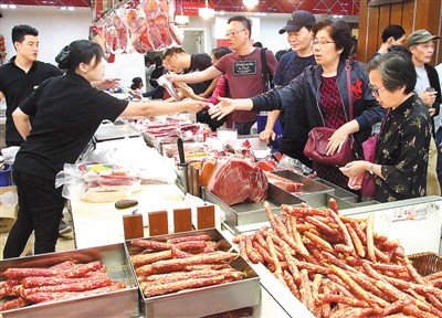“超级黄金周”国内游火热。图为游客在食品店选购食品。新华社记者 陈 飞摄